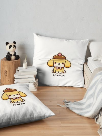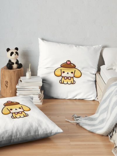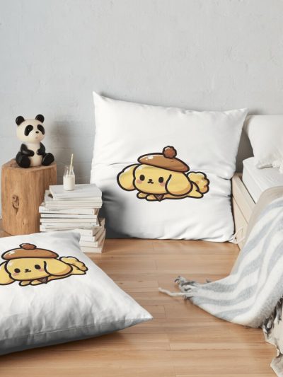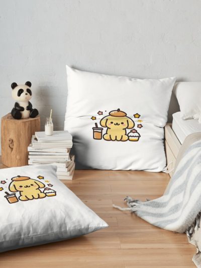 Pompom Pudding Dog 2 Throw Pillow